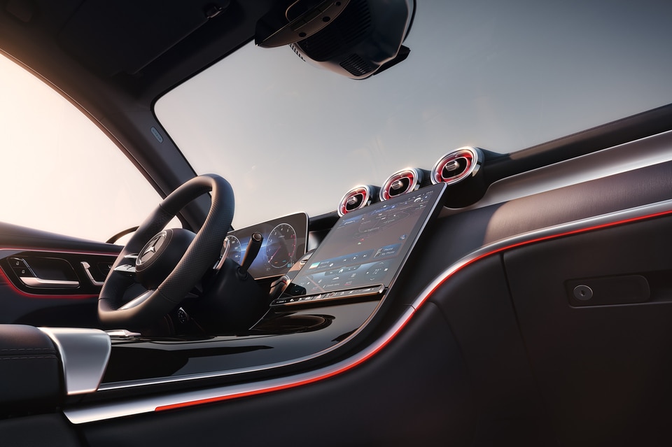 The standout Mercedes-Benz GLC 350e plug-in hybrid combines a 2-liter turbocharged engine with electric power to produce 313 horsepower while achieving 25 miles per gallon combined. This innovative powertrain features an 11-kilowatt onboard charger with a 3-hour charge time at 220/240-volt, offering drivers in Centerville the flexibility of electric driving for daily commutes and gasoline power for longer journeys. All GLC 350e models come standard with 4MATIC all-wheel drive, ensuring confident handling in various conditions.